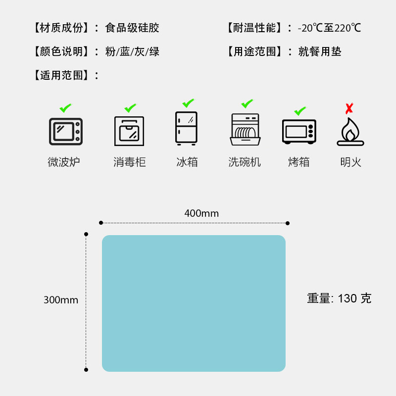 您的位置:首頁 > 產(chǎn)品中心 > 硅膠廚具用品 > 餐墊 > 硅膠餐墊 40*30食品級硅膠兒童餐墊隔熱學(xué)生桌墊