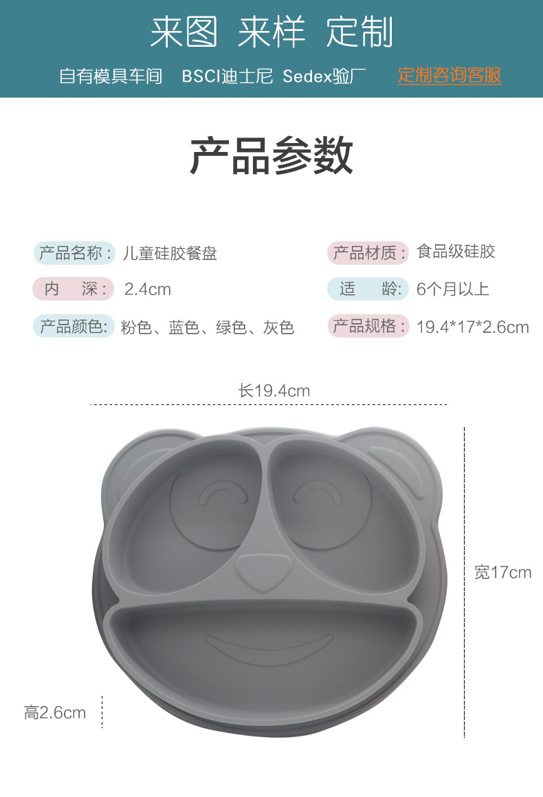 產(chǎn)品名稱:兒童一體式笑臉硅膠餐盤