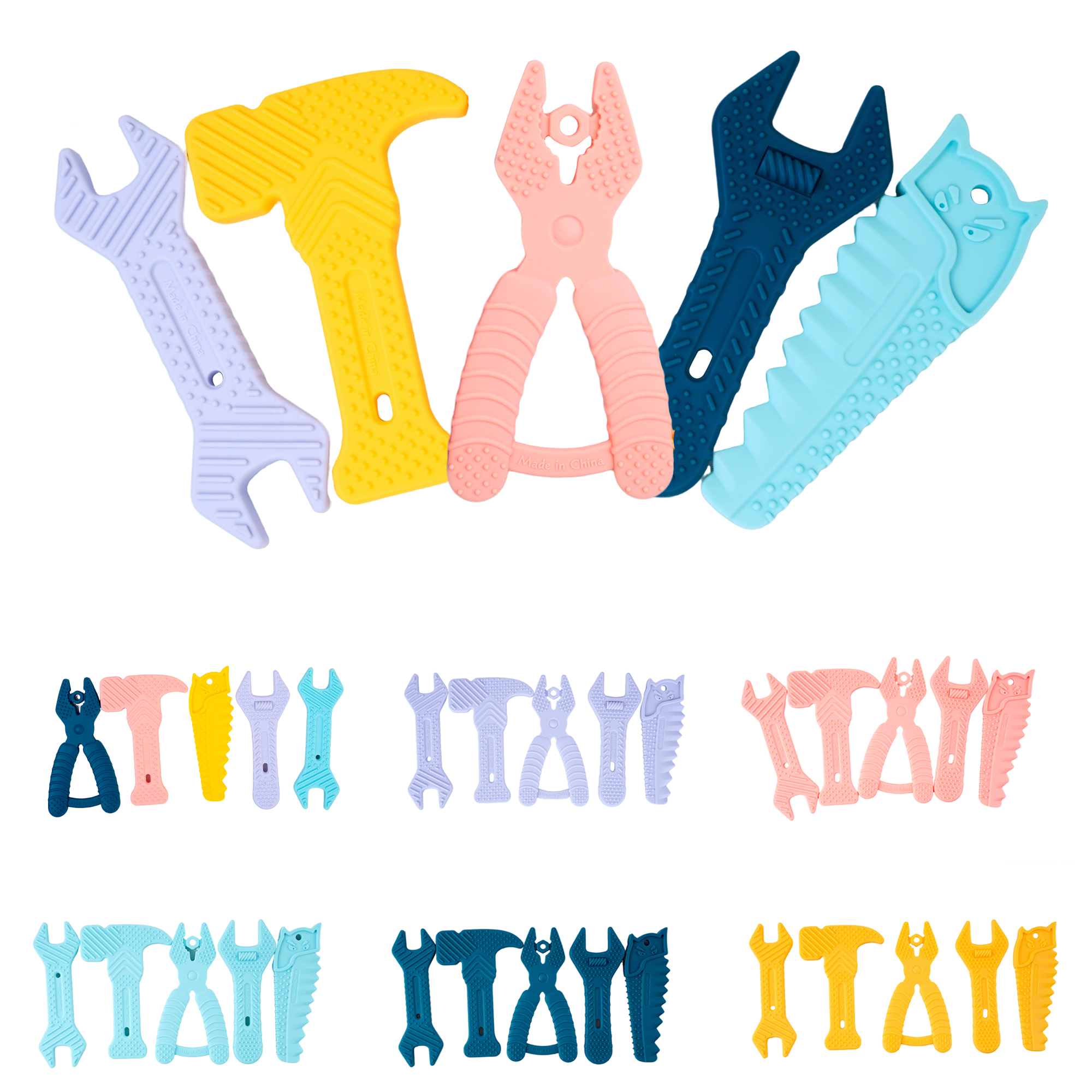 您的位置:首頁 > 產(chǎn)品中心 > 硅膠嬰童用品 > 牙膠 > 亞馬遜錘子扳手牙膠嬰兒硅膠磨牙棒寶寶卡通兒童防咬手牙膠5件套